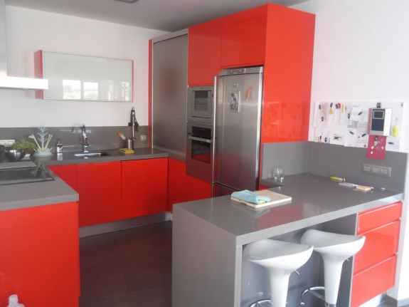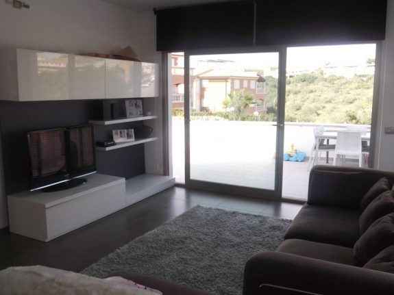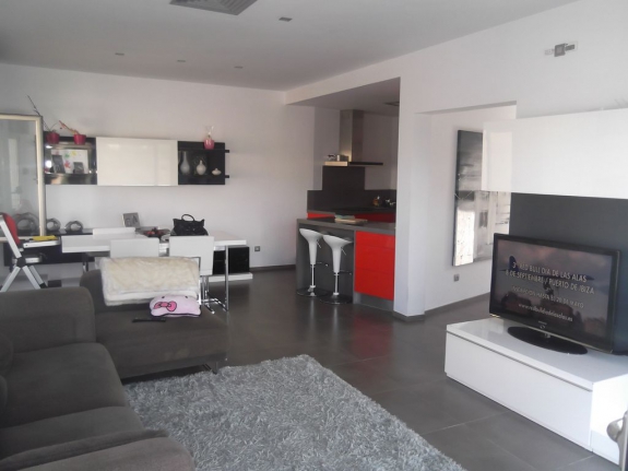 Planta baja de 70m2 + 24m2 de terraza: recibidor, salón comedor, aseo, cocina americana de diseño.